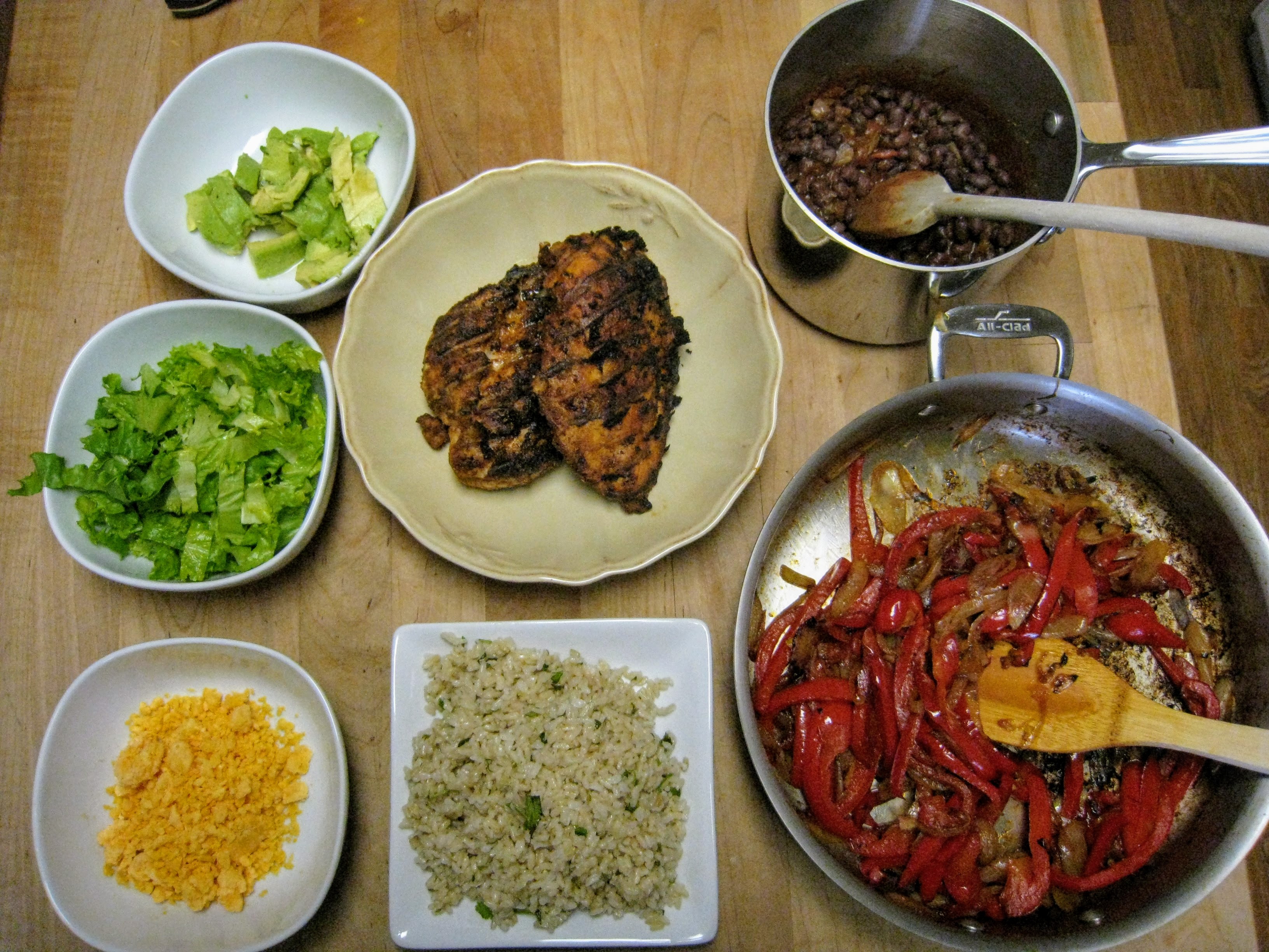 Our family loves Chipotle. I would have been devastated if our small town did not have one here…that along with Chick-fil-A, but I digress. Most people do not know that the flour tortillas have 290 calories, the serving of white rice has 130 calories and the chips have 570 calories! Tack on sour cream and guacamole and you could easily create a 1000 calorie burrito if you are not careful. I started making these burritos at home after I had them at my cousins house. They are reminiscent of those at the restaurant but with a few healthy alternatives. I make brown rice with cilantro and lime instead of white and I substitute whole wheat tortillas for white flour tortillas. These are just as good and you can feel good knowing you’re serving your family a healthy alternative!