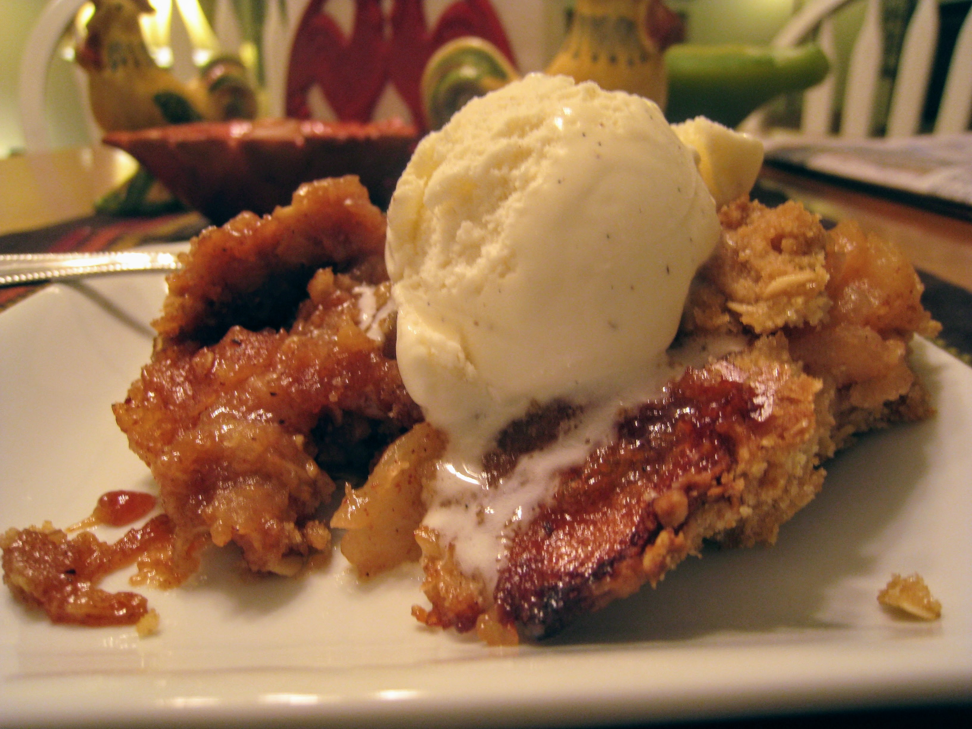 I had an overabundance of apples in my organic box this past week so I decided to make this recipe. It’s easier than a pie (in my opinion) since you don’t have to mess with a crust and you can easily substitute other fruit depending on the season. (We love peach and raspberry crisps in the summer!) This is best served warm and a la mode, of course!