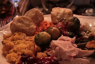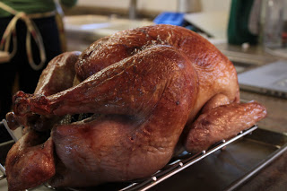 Thanksgiving dinner this year was oh so time consuming but the end result was superb. We tried a new recipe for the bird this year. The turkey was brined and then roasted. Check out the recipe and video here. The brine really bumped up the moisture level for the turkey and it was very moist even after the second and third day of leftovers. I would highly recommend this recipe for a novice who is a little intimidated of preparing a turkey.