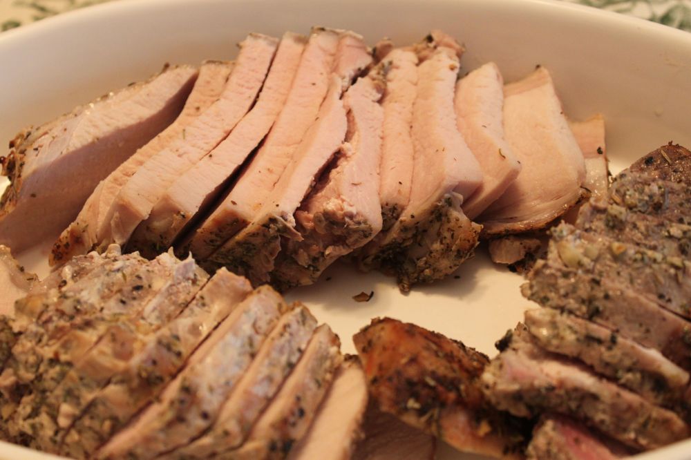 Herb Roasted Pork Loin with Parsley Shallot Sauce
