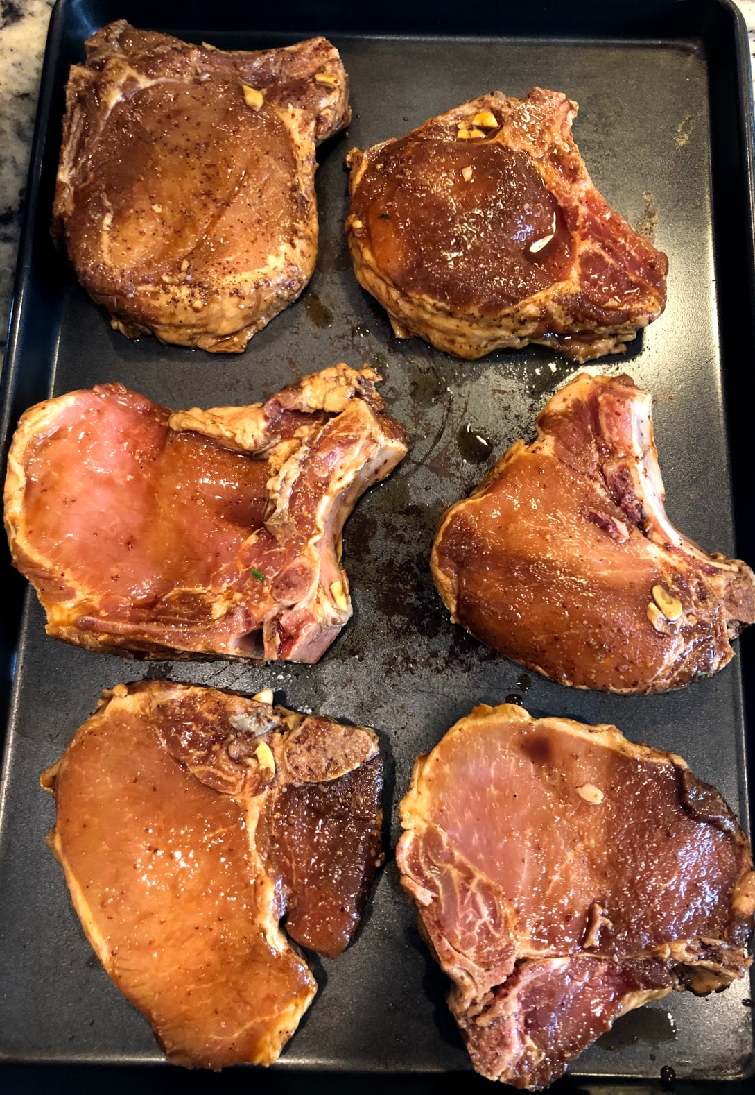 - 4 6-to-8 ounce bone-in pork chops, 1 inch thick (I get mine at Costco)