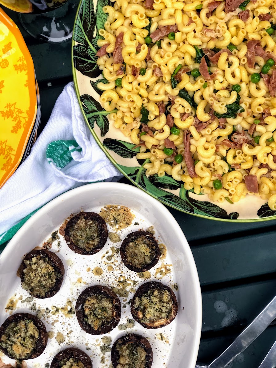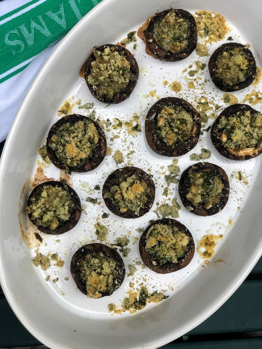We made a few substitutions to the stuffed mushrooms recipe due to not having the exact ingredients. We subbed almond flour for the bread crumbs, we used freshly grated Parmesan cheese instead of Romano, we omitted the parsley (didn’t have any) and subbed basil from the garden instead and we used baby Portabella mushrooms instead of white mushrooms. Here is the link for the recipe.