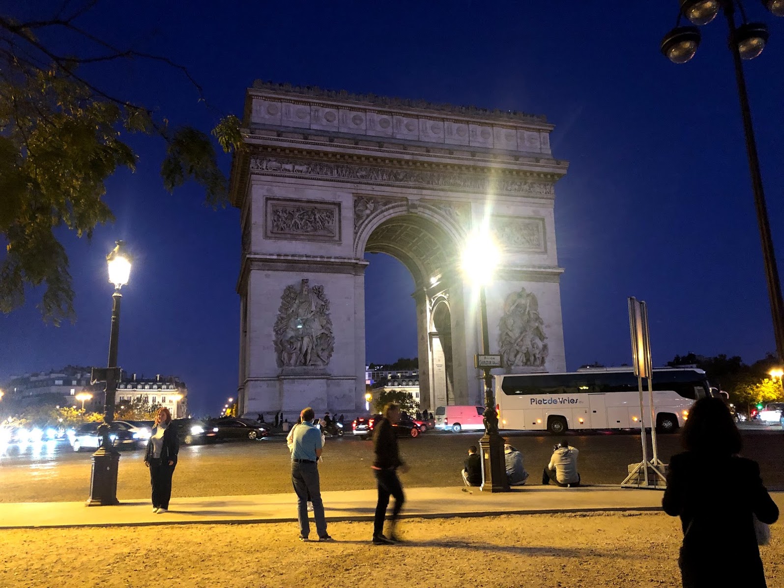 When hubby asked me if I’d like to go to Paris this September for a belated anniversary trip, I was all ears. We had been in 2006 for ten days and I loved it then and I knew I would love it now. Leaving three kids while mom travels overseas is no easy task and gave me some anxiety but my dear in-laws were up to the challenge and were most agreeable to staying with the kids for 7 days. David left for Paris a week earlier and I would be joining him at the tail end of his work trip. I traveled on a Wednesday and arrived in Paris Thursday around 3:00 p.m. local time. I took this bus from the airport and it was just steps from the Airbnb that hubby was already staying in, close to the Arc de Triomphe. The night I arrived, we went to dinner with his colleagues and then headed up to the Arc de Triomphe to see the Eiffel Tower all lit up.