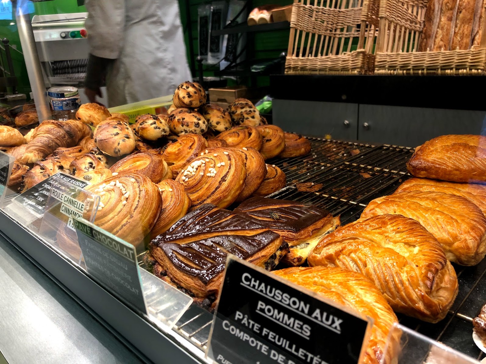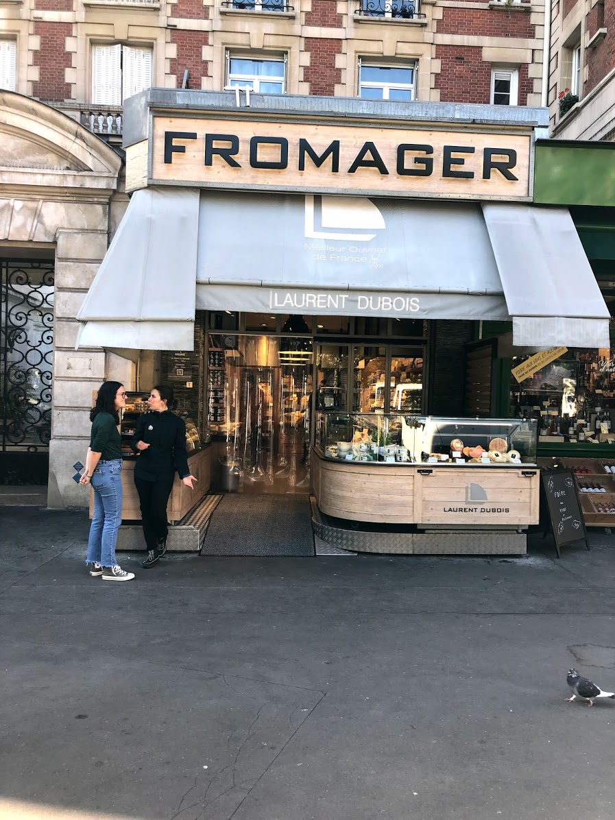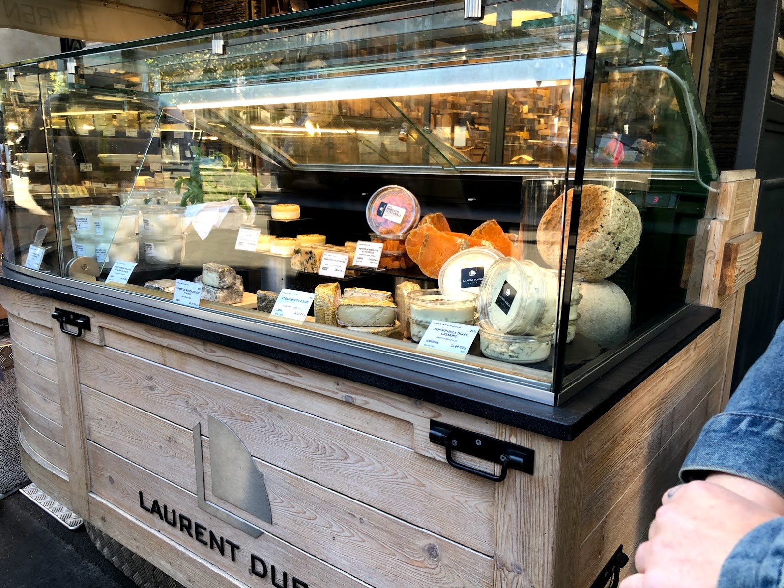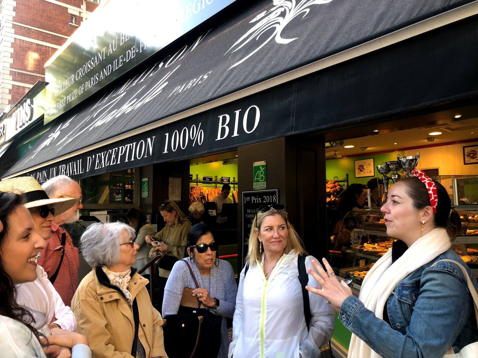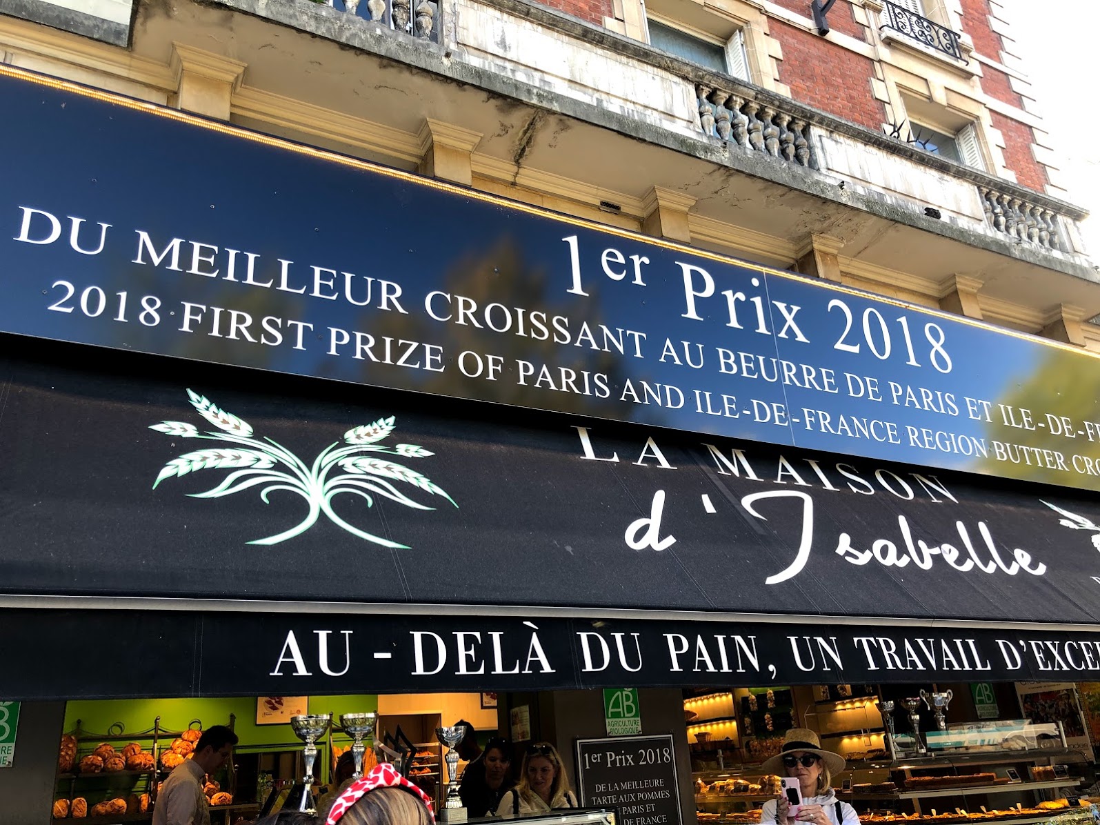 Friday was a day to myself since hubby was working. The original plan was to meet my friend from Germany for the day but those plans changed about a week or so before my trip. I was not too keen about being all by myself touring a museum so I booked a food and wine tour with Paris by Mouth and it ended up being a delicious day! I rode the Metro(!!) and found my tour guide along with 7 other tourists waiting for me (I was the last one to arrive, oops!) in the Saint-Germaine neighborhood of the Left Bank. My tour guide is an American, married to a Frenchman and lives in Paris. She was very knowledgeable and I was envious of how well she spoke French with the locals. Our tour started at La Maison d’Isabelle, a boulangerie owned by a baker in her 30s who has won the award for the best croissant au beurre (croissant made with butter, apparently some are made with margarine. Gasp.) in the city of Paris for 2018. Her pastries and bread looked delectable but we sampled her croissants au beurre, baguette and pavΓ© chocolat (chocolate brick, they do not make this daily so this was a treat). We then meandered next door to the fromagerie, Laurent Dubois who has earned the prestigious honor of Meilleur Ouvrier de France (MOF), a unique title that translates as the best craftsman in France. Here is a brief synopsis on what it means to earn this highly sought after award. At Laurent Dubois, we tasted 3 cow cheeses and 3 goat cheeses, all made with raw milk. One of the cheeses was washed in a walnut liqueur and was originally made by some nuns in an abbey. Next we headed to the charcuterie (next door!) where we tasted pork sausage with peppercorn, pΓ’te de volailles Γ l’estragon (pork pΓ’tΓ© with pistachios layered with chicken pΓ’tΓ© with tarragon); mousse de canard (duck mousse); and rillettes a lβoie (shredded slow-cooked goose).