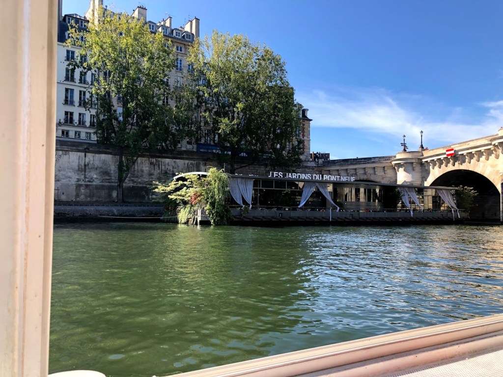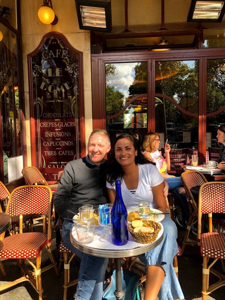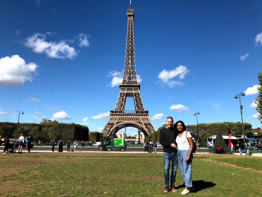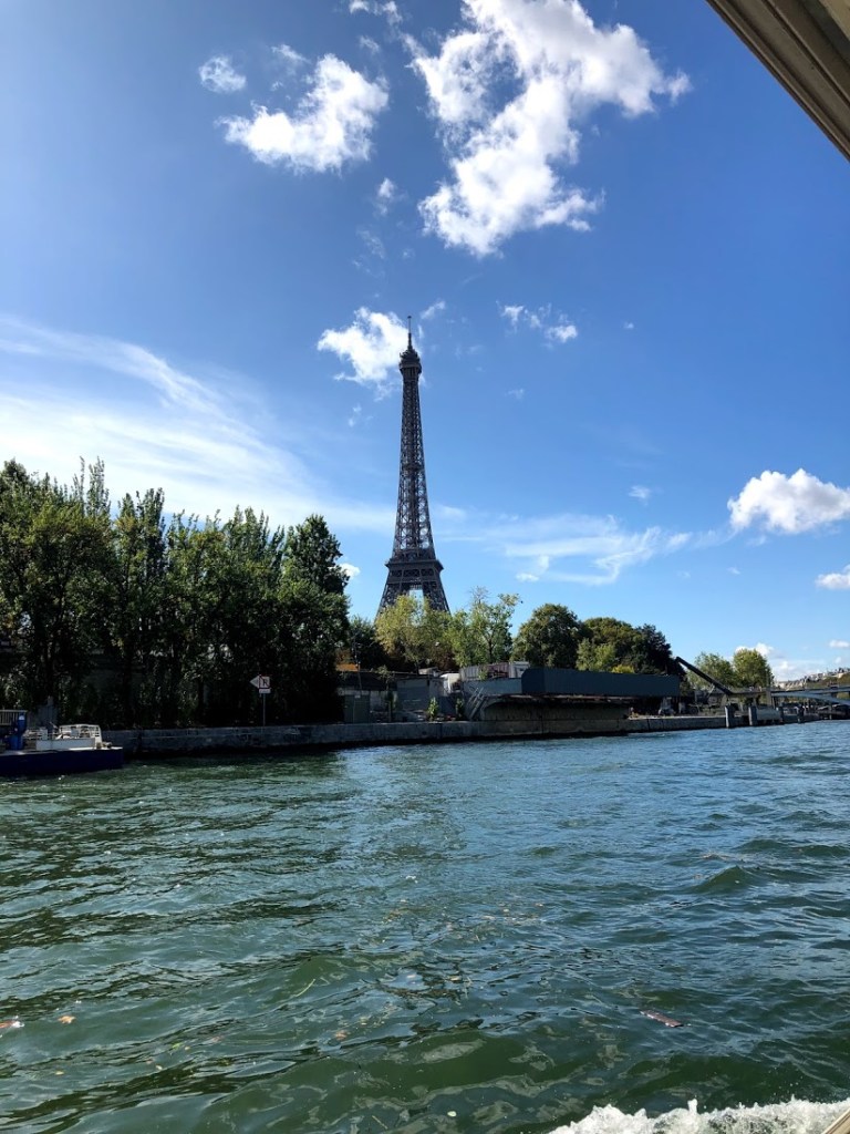 We returned the car π¦ and had to return to public transportation. It was a beautiful day and so we decided to purchase tickets for the Batobus , a hop-on, hop-off boat tour that stops at 9 popular locations along the Seine River. We hopped off at the Eiffel Tower stop, tried to escape all the vendors selling you their trinkets and snapped a few pictures as close as you could get to the tower without having to tour it. We stopped for lunch and I almost didn’t ask the couple next to us take our picture but I am so glad I did, it’s my favorite one of the trip.