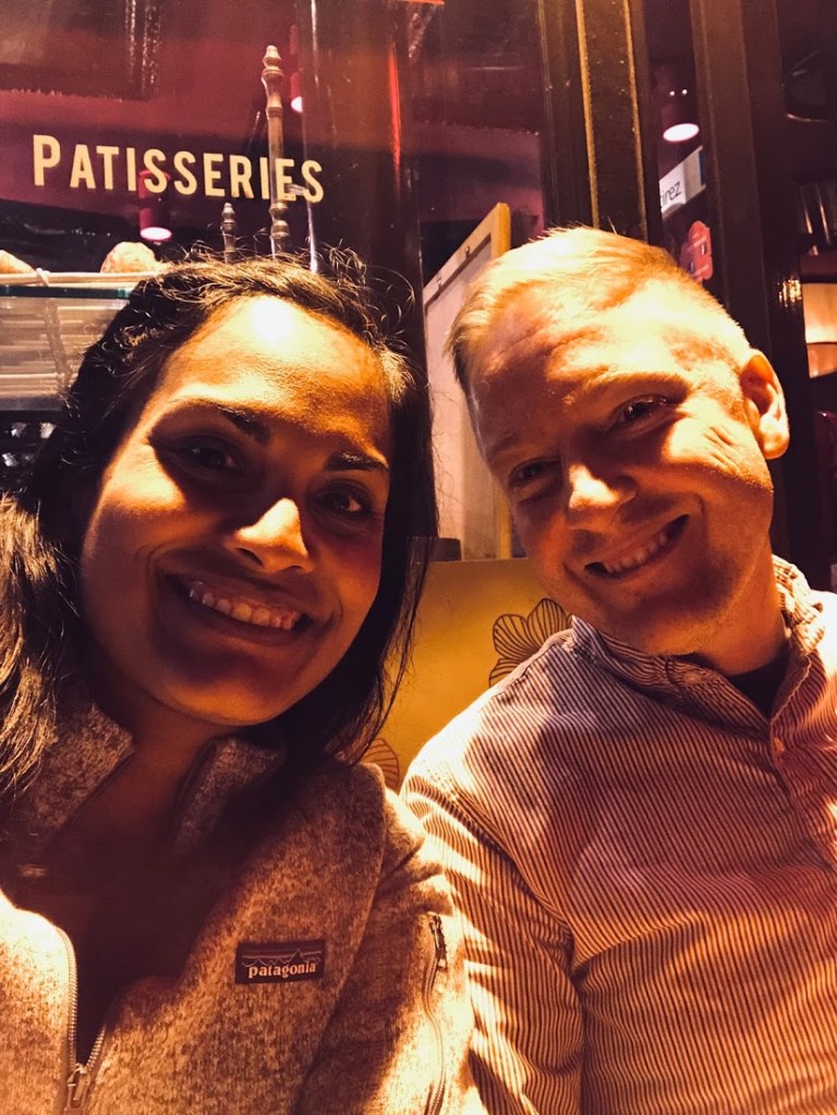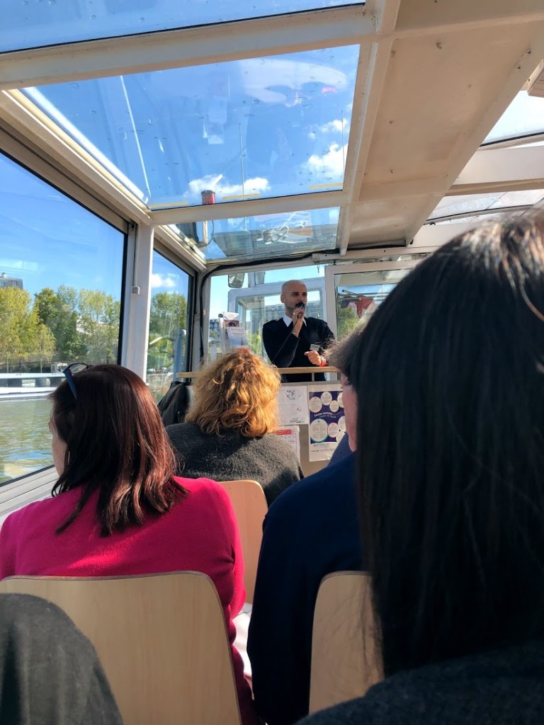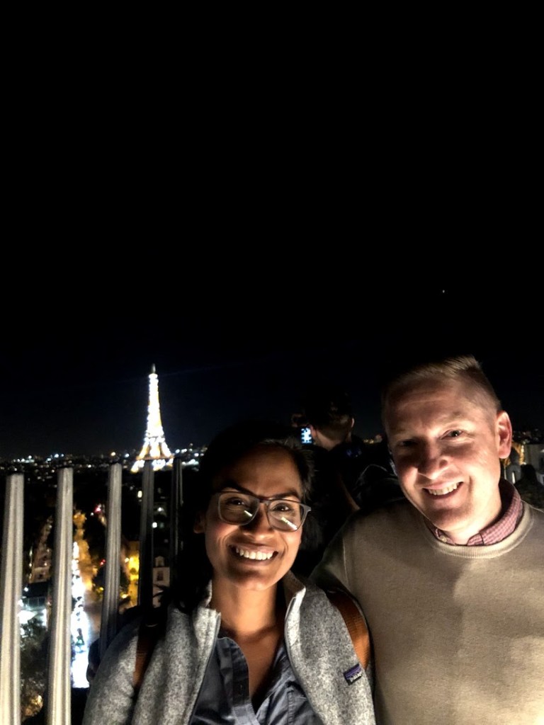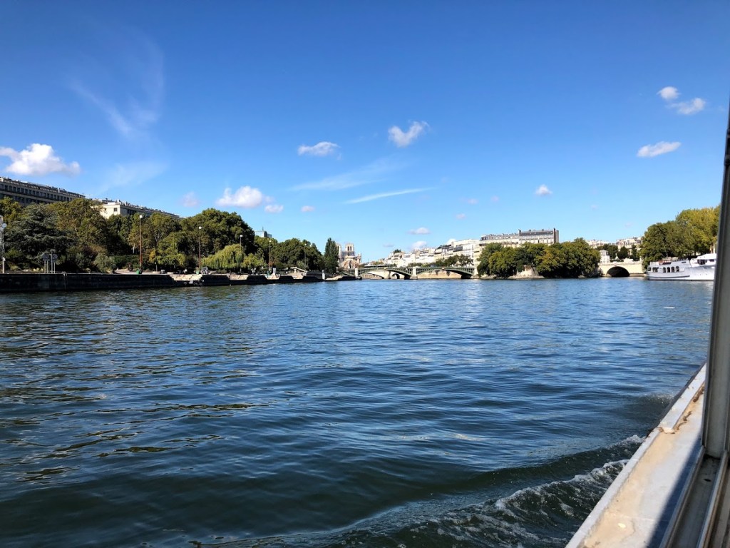 We returned the car π¦ and had to return to public transportation. It was a beautiful day and so we decided to purchase tickets for the Batobus , a hop-on, hop-off boat tour that stops at 9 popular locations along the Seine River. We hopped off at the Eiffel Tower stop, tried to escape all the vendors selling you their trinkets and snapped a few pictures as close as you could get to the tower without having to tour it. We stopped for lunch and I almost didn’t ask the couple next to us take our picture but I am so glad I did, it’s my favorite one of the trip.